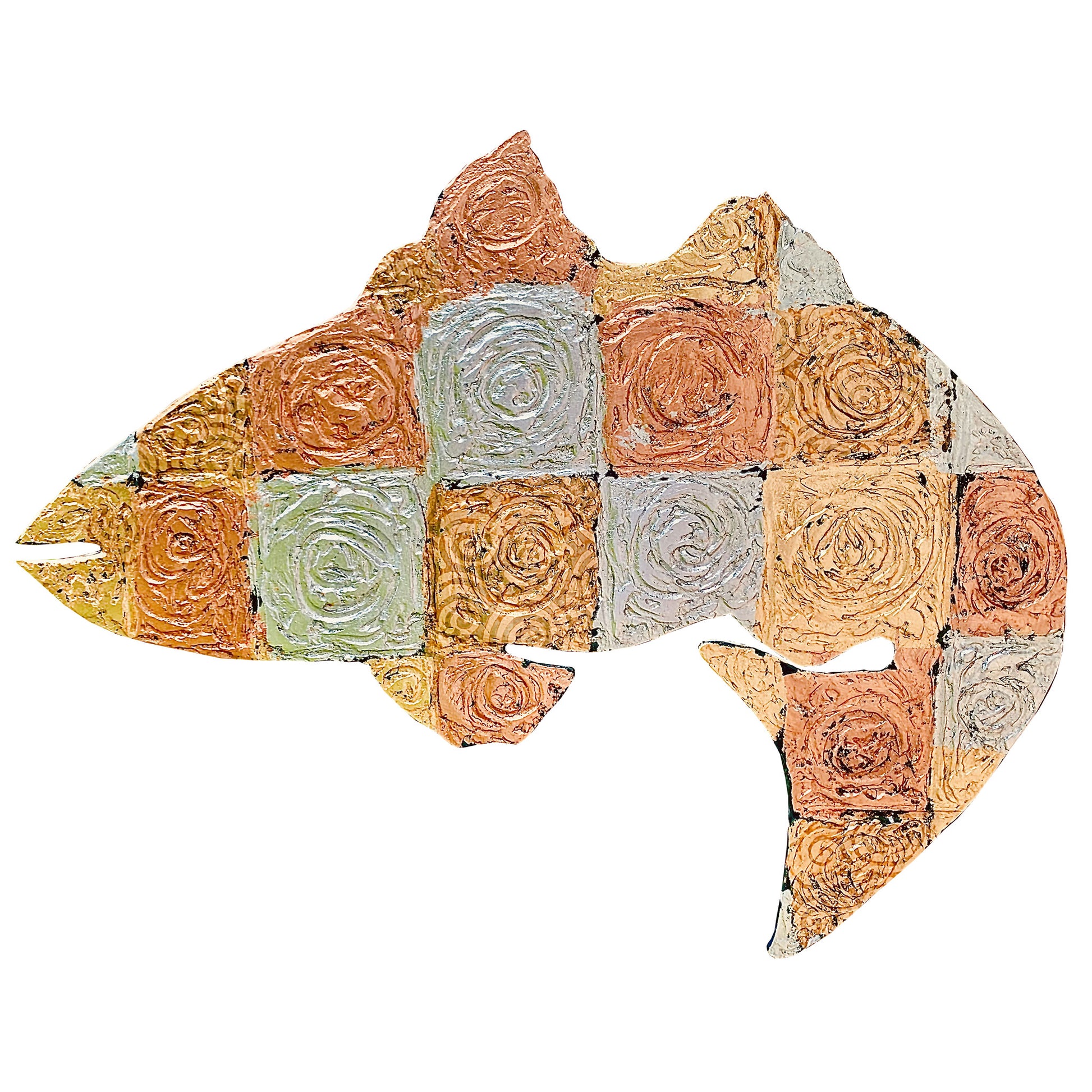 Medium: gold, bronze and silver leaf with joint compound on plywood